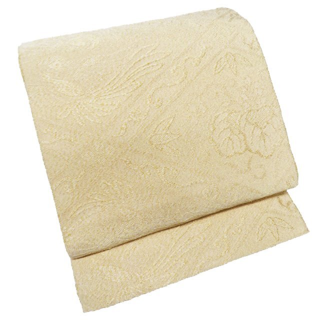 - 名古屋帯 なごや帯 綴れ 中古 正絹 カジュアル 仕立て上がり 全通 菱文 植物文様 向い鶴 金通し 蒸栗色 きもの北條 A1065-10