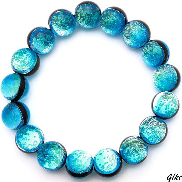 > 【爽やかなブルーのグラデーション】ブレスレット ホタルガラス 12mm 沖縄 波照間島 シンプル おしゃれ ユニセックス プレゼント
