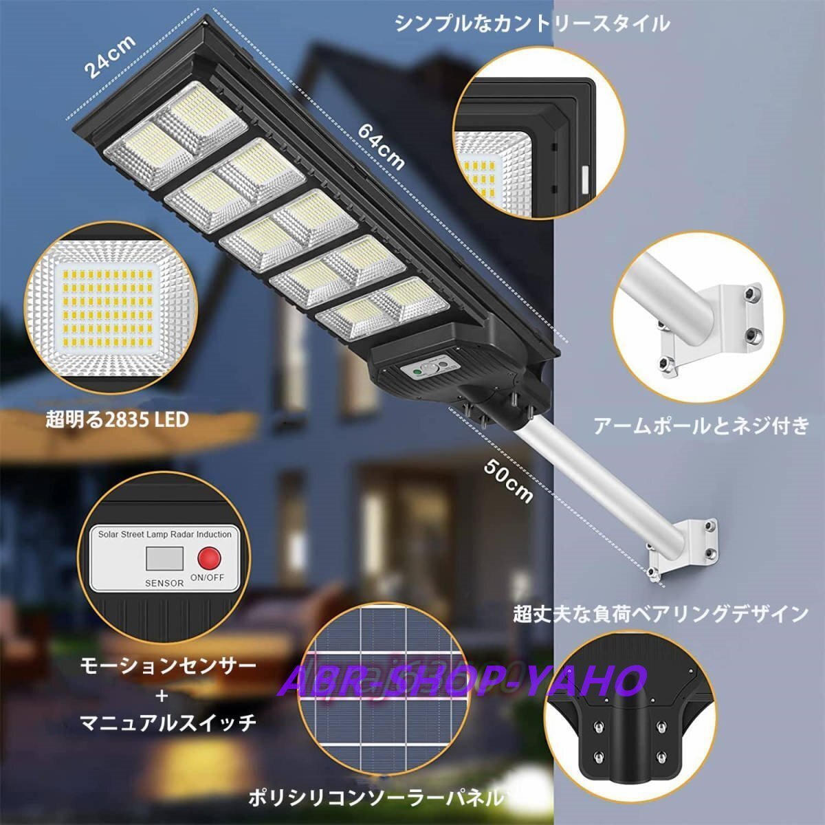 - LED ソーラー街灯 1000w 防水 センサーライト 屋外 人感センサー 光センサー 防犯最適 屋外照明 夜間自動点灯 太陽発電 防犯灯 駐車場灯
