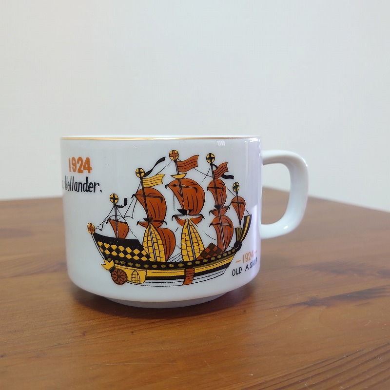 - 台湾レトロ◆大同製◆マグカップ 帆船 茶/黄色◆台湾食器◆ヴィンテージ
