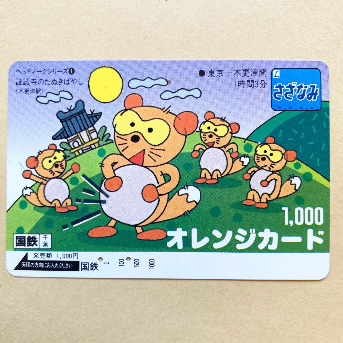 - 【使用済】 オレンジカード 国鉄 ヘッドマークシリーズ① さざなみ 証誠寺のたぬきばやし(木更津駅)
