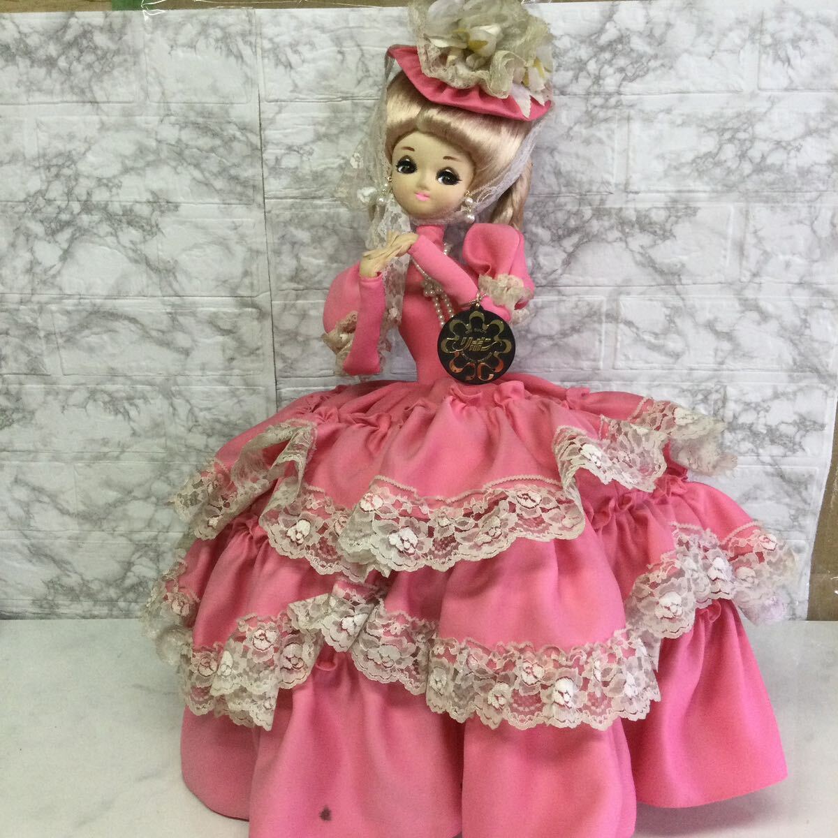 - 昭和レトロ スキヨ リボン フランス人形 ピンク ドレス 可愛い レース R30