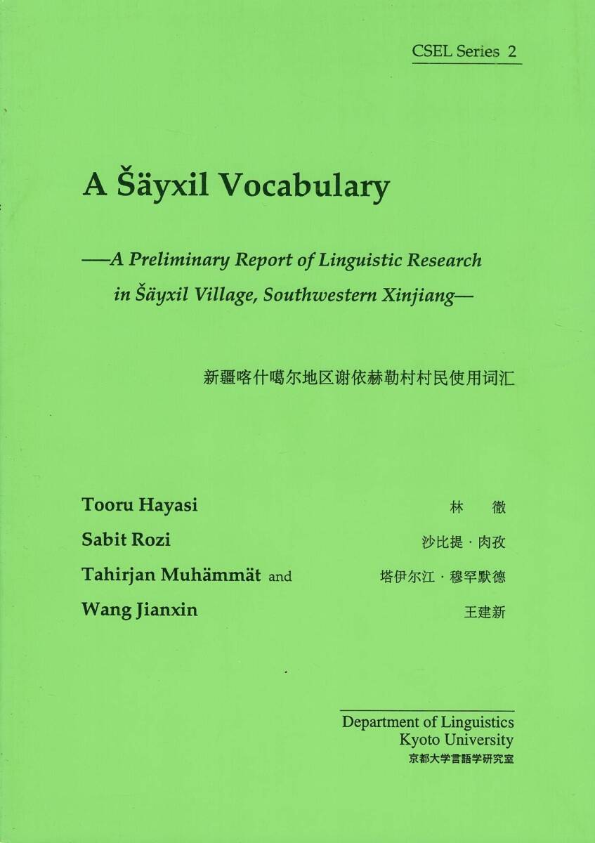 - 「A Sayxil Vocabulary-新疆ウイグル自治区南西部謝依赫什村における言語調査の予備的報告」京都大学言語研究室 1999 B5 108p RB424FU
