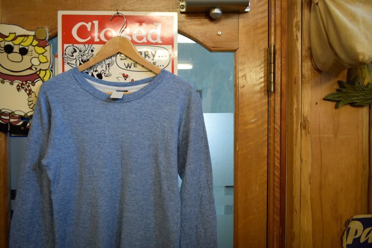 - グッドスタイル◎USA製アメリカ製DUOFOLDデュオフォールドボディ長袖TシャツアンダーウェアMアイスブルー水色アメカジストリート h23748