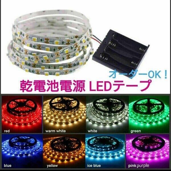 - ポン付!乾電池電源 LEDテープ 10cm【オーダー可能!】 1本 非防水 SMD2835■白赤黄青ピンク紫水黄緑電球色