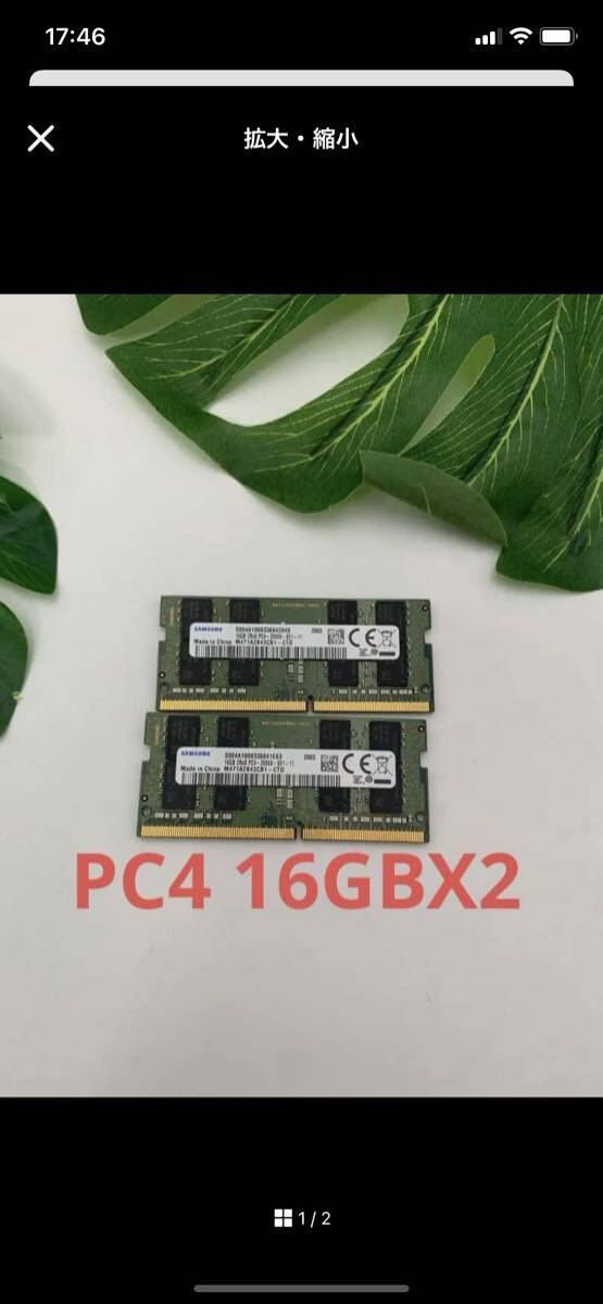 > SNMSUNG 2RX8 PC4-2666V-SE1-11 16GB×2 ノート用メモリ動作品 2枚セット