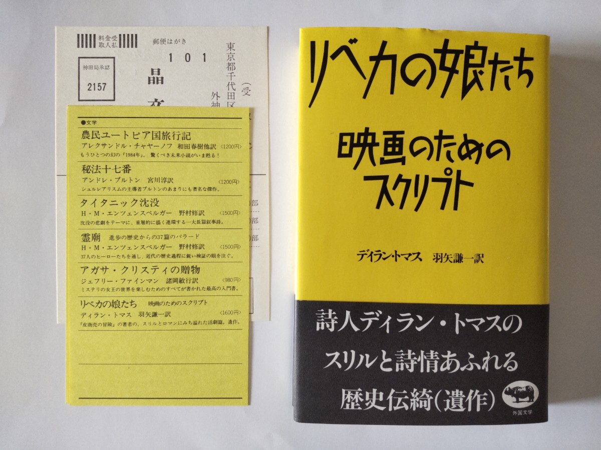 - 初版帯愛読者カード/リベカの娘たち 映画のためのスクリプト ディラン・トマス 晶文社 羽矢謙一 1985 平野甲賀 ウェールズ