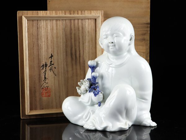 > 魁◆名家旧蔵 本物保証 十三代柿右衛門 本人作 太白菊童子 置物 高さ20㎝ 共箱 秀逸厳選作品