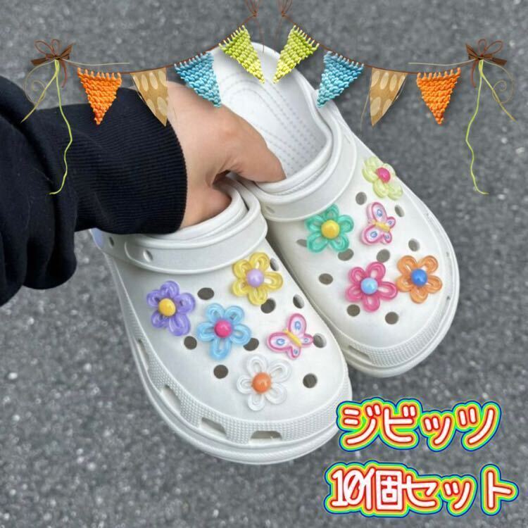 - ジビッツ10個セット フラワー お花 ちょうちょ 蝶々 サンダルアクセサリー クロックスアクセサリー キッズ レディース小物 可愛い