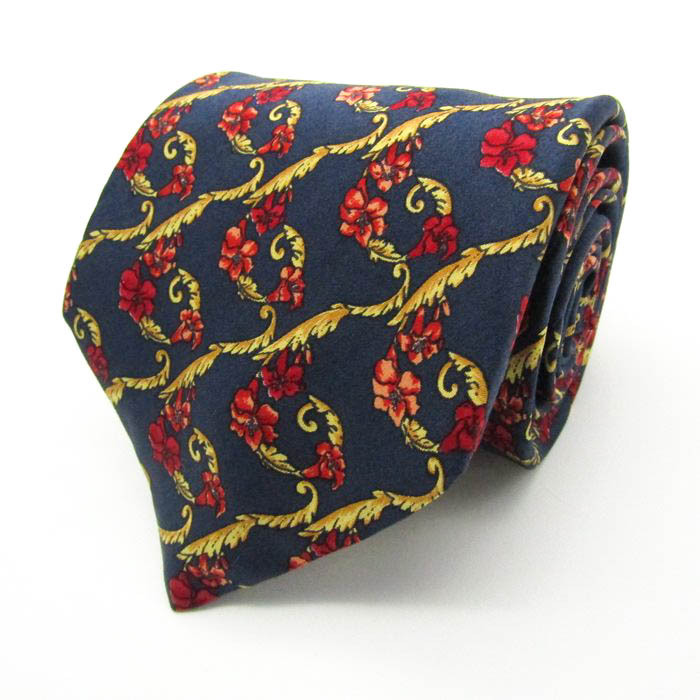 > ピエールバルマン ブランド ネクタイ シルク 花柄 格子柄 ハンドメイド メンズ ネイビー PIERRE BALMAIN