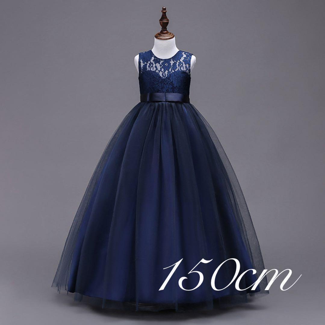 - ワンピース 発表会 チュール フォーマル ネイビー キッズ ドレス 女の子 ピアノ プリンセス シンプル 刺繍 かわいい おしゃれ 150