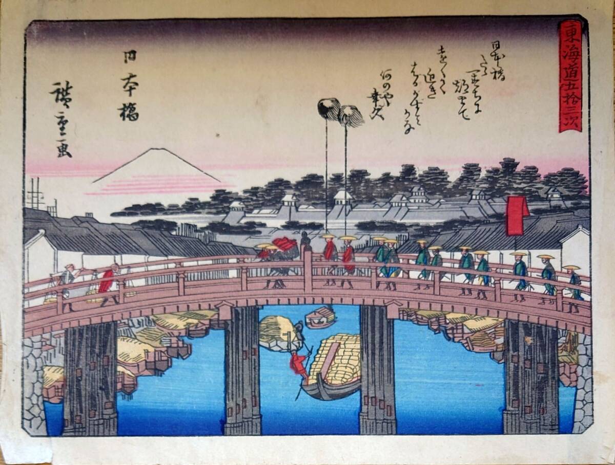 - f24040401〇彩色木版画 佐野喜版 狂歌入東海道五十三次 日本橋 広重 複刻昭和年代〇和本古書古文書