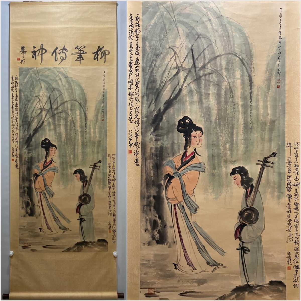 > 古美術 掛け軸 中国・近現代 「傅抱石書」 紙本 【仕女図】 立軸 書道 巻き物 真筆逸品 肉筆保証 唐物 古画 LT-2407167