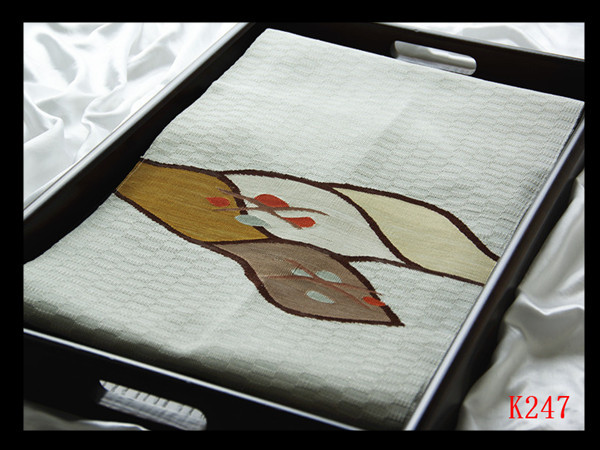 - K247厳選西陣 手織り 装飾紋 灰黄緑色地 気品豊かに 高級美術正絹名古屋帯 ◇検◇簪着物袋帯帯締め