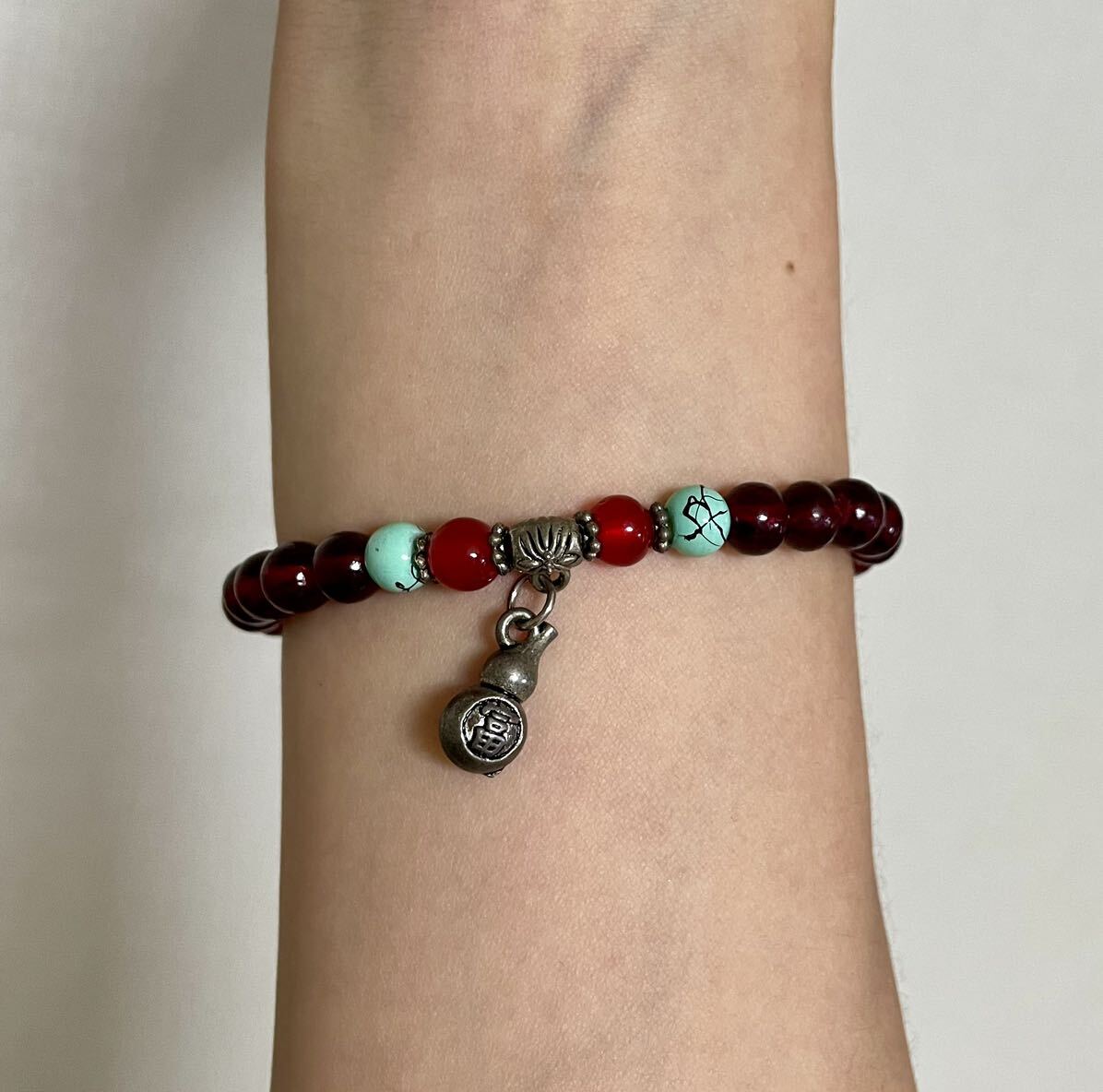 - 天然石のブレスレット 小物ファッション レディース ブラック 数珠 念珠 お守 魔除 パワーストーン レッド シルバー