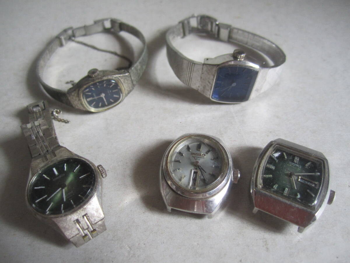 - 作動未確認ジャンク SEIKO 手巻腕時計3コと自動巻き2コ(ベルトなし)