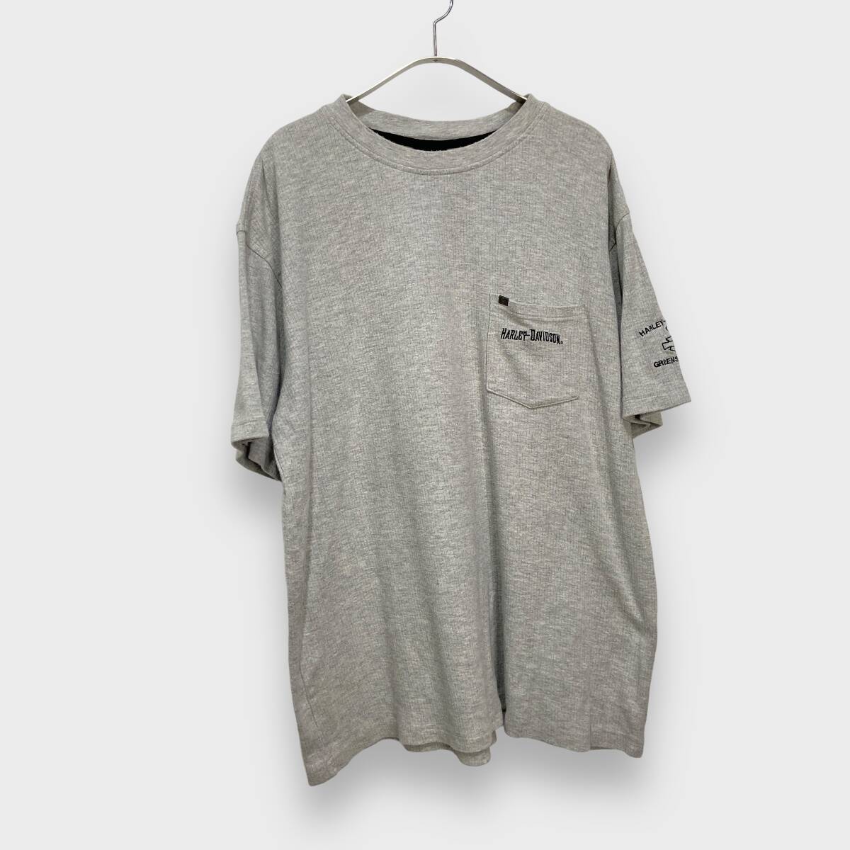 - 送料無料☆ハーレーダビッドソン☆ワンポイントロゴTシャツ☆リブ編みコットン素材☆ポケT☆ストライプ柄☆グレー☆L☆H24M