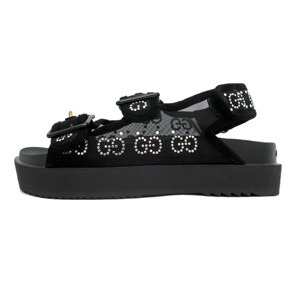 - 【名東】グッチ サンダル クリスタル ベルト ブラック 701158 サイズ36 GGロゴ メッシュ レディース
