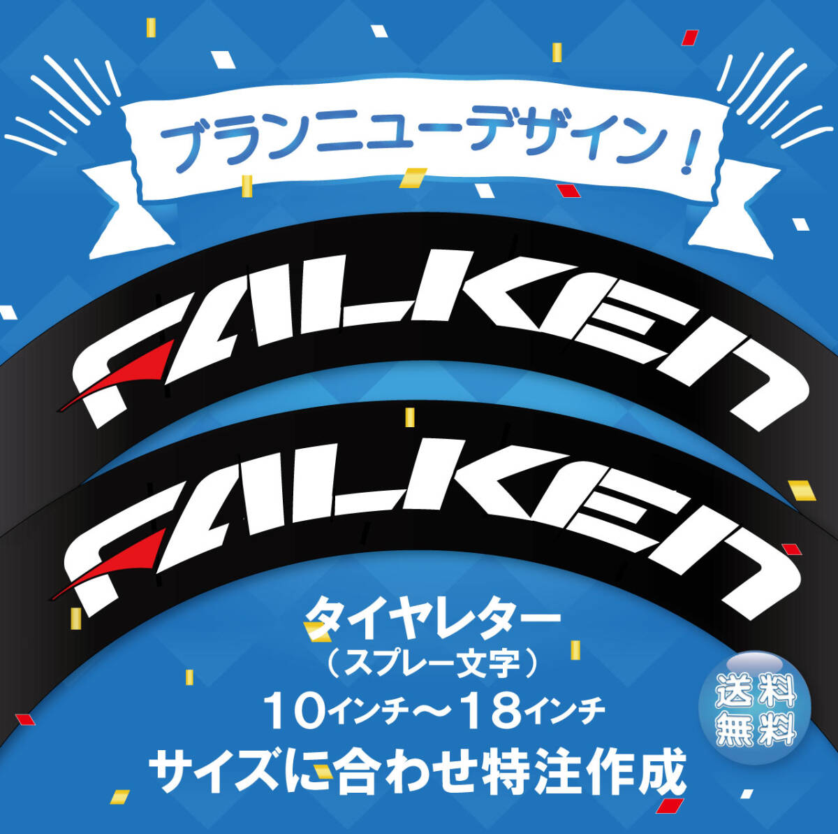 「FALKENでタイヤサイズが225/35/18で、文字高さ4cmで作成願います。。」 等
