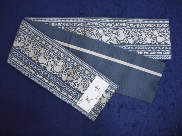 - 本場筑前博多帯 0265 角帯 <森博多織謹製> 武士 紺/グレー 瓢箪