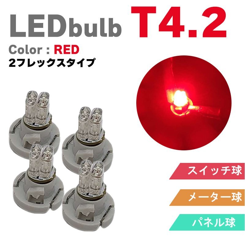 > LED T4.2 メーターパネル球 レッド 4個 LEDルーム フレックス メーターランプ球 パネル球 スイッチ エアコン メーター ハイエース セレナ