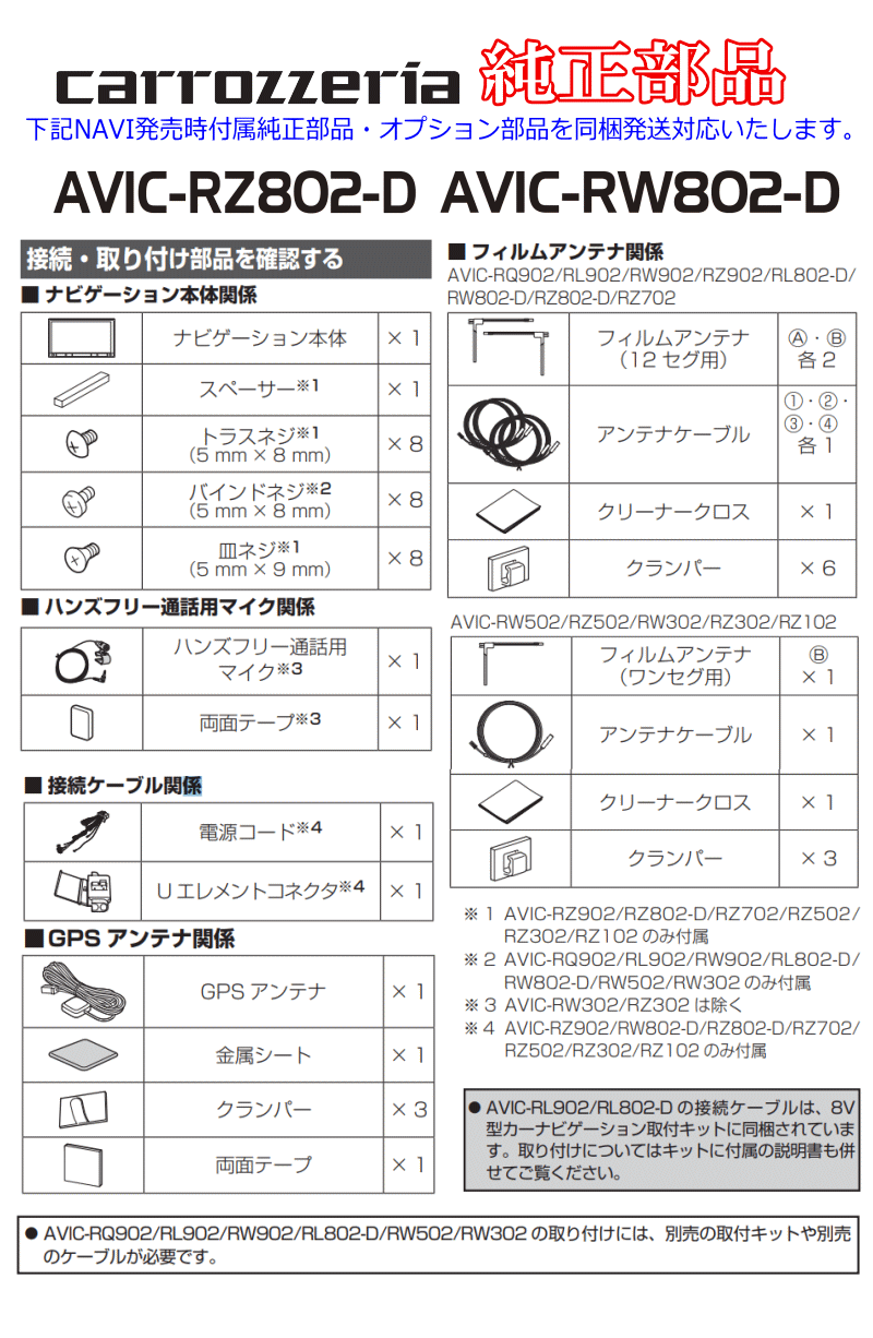 > カロッツェリア carrozzria 純正品 AVIC-RZ802 AVIC-RW802 音声入力用マイク Set (CM12