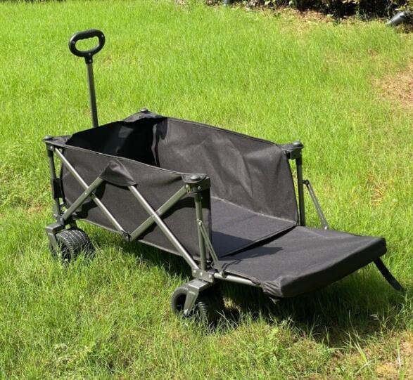 - キャリーワゴン キャリーカート カバーテーブル付き ワイドタイヤ ブレーキ付き ブラック