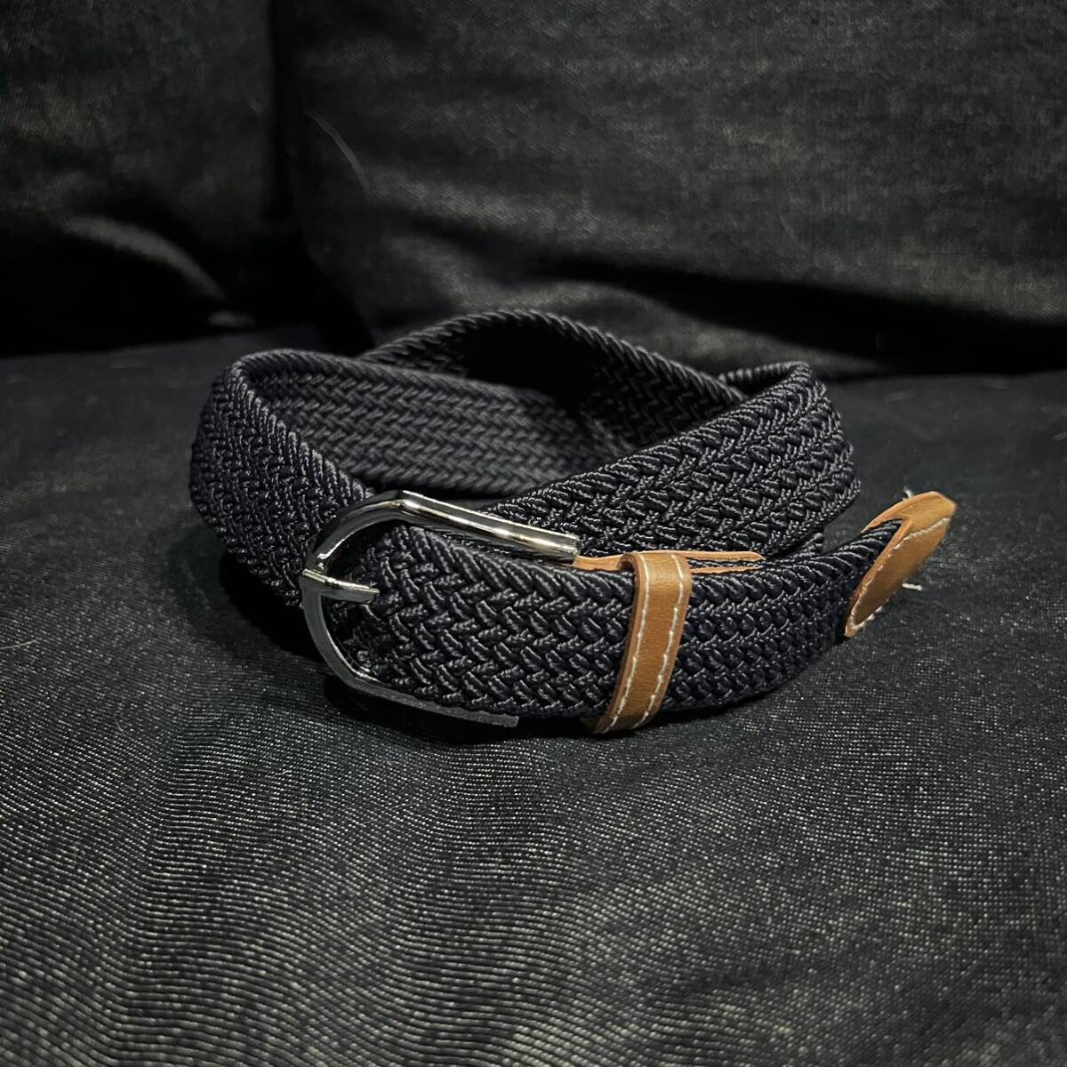 - ストレッチ メッシュ ベルト ネイビー フリーサイズ メンズ レディース ゴムメッシュベルト カジュアル