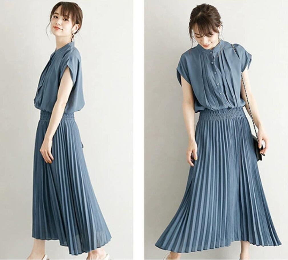 - LRM2689★プリーツ ワンピース 半袖 ロングワンピース マキシワンピース 接触冷感 冷感 涼感 涼しい 綺麗 シフォン入園式 卒業式