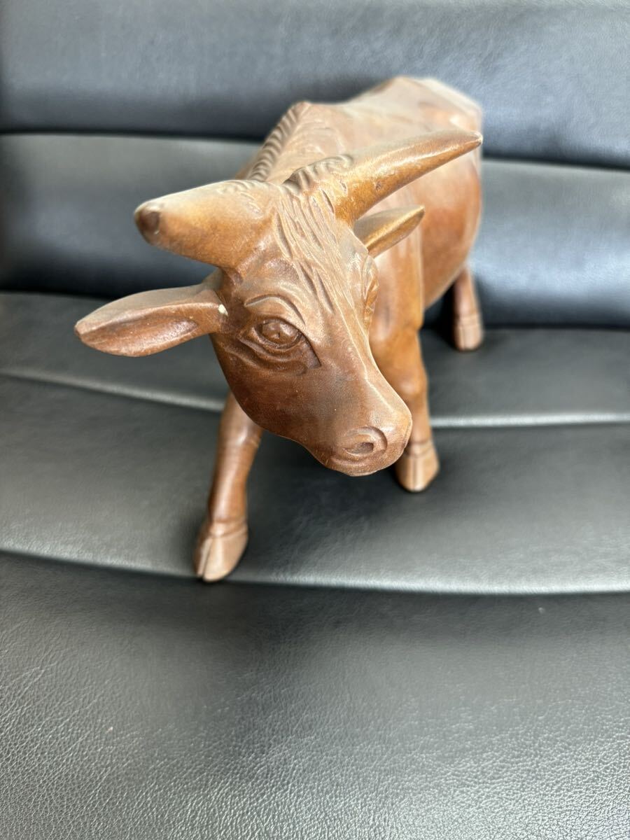 - ★ 木彫り 牛 水牛 黒毛和 木製人形 民芸品 工芸品 インテリア 置物 中古