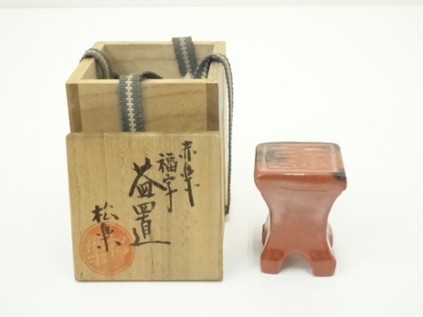 - ys6987835; 佐々木松楽造 赤楽福字蓋置(共箱)【道】