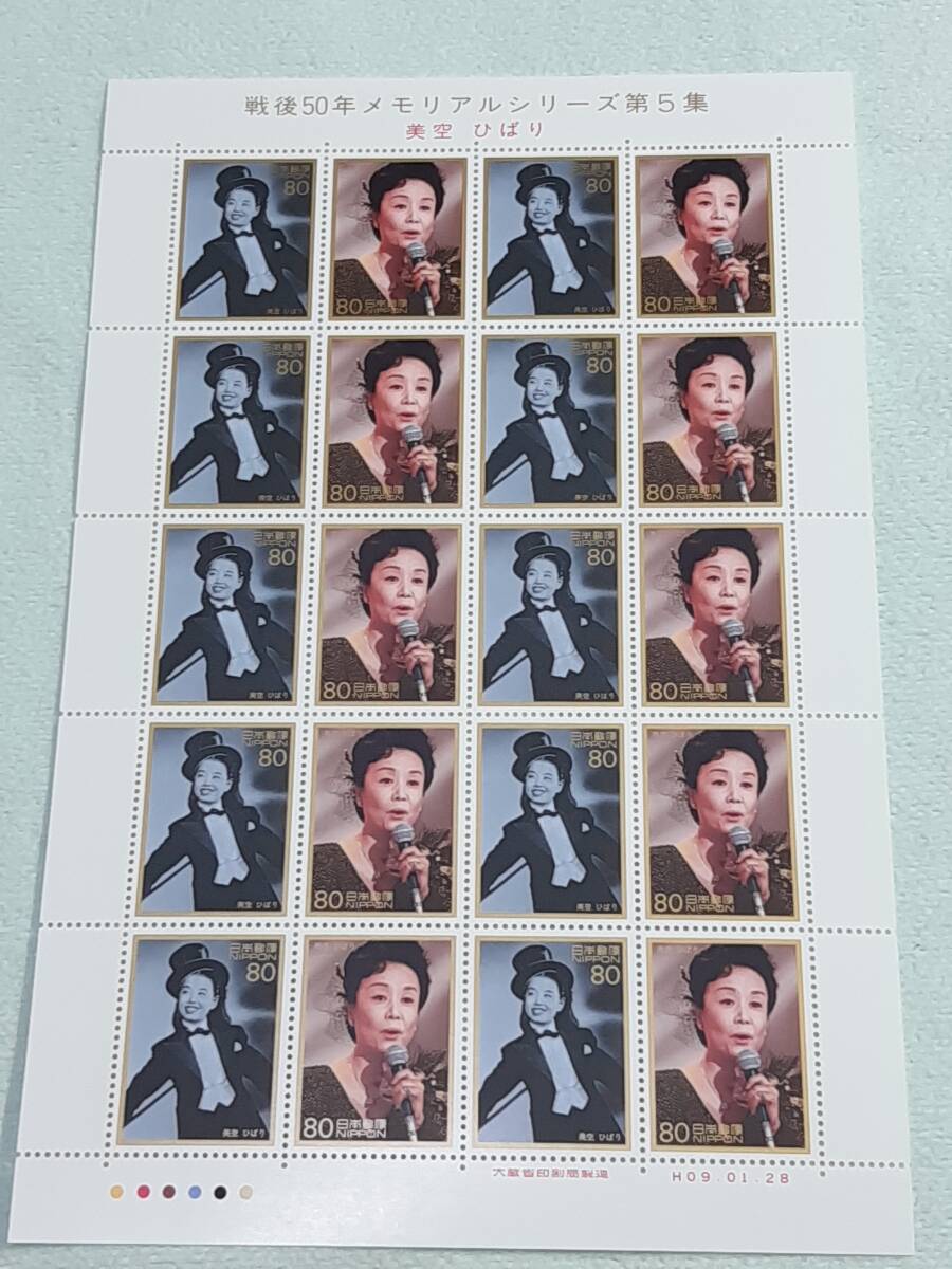 戦後50年メモリアルシリーズ第5集 美空ひばり H9 切手シート1枚