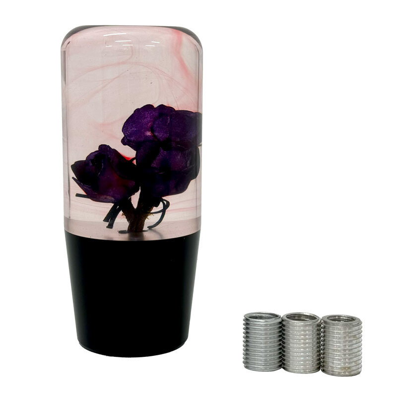 - 水中花シフトノブ バラ 角タイプ 10cm M12×1.25 アダプター付属 色移りあり 乗用車・トラック等 紫 アクリル ブレイス AF-221