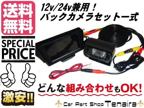 > 12V 24V 暗視 バックカメラ 20M延長コード付 4.3モニター オンダッシュ 液晶モニター RCA ケーブル 一式 セット 送料無料/1