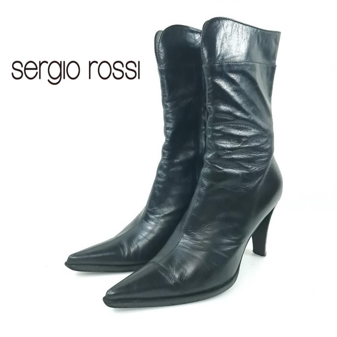 - hws00577 セルジオロッシ SERGIO ROSSI ミドルブーツ サイドジップ ポインテッドトゥ ブラック イタリア製