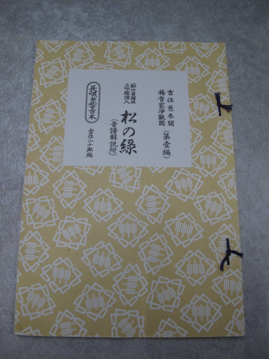 - 長唄新稽古本 節付音譜並三味線譜入 /松の緑 第1編 /吉住小三郎・稀音家浄観 校閲/吉住小十郎編