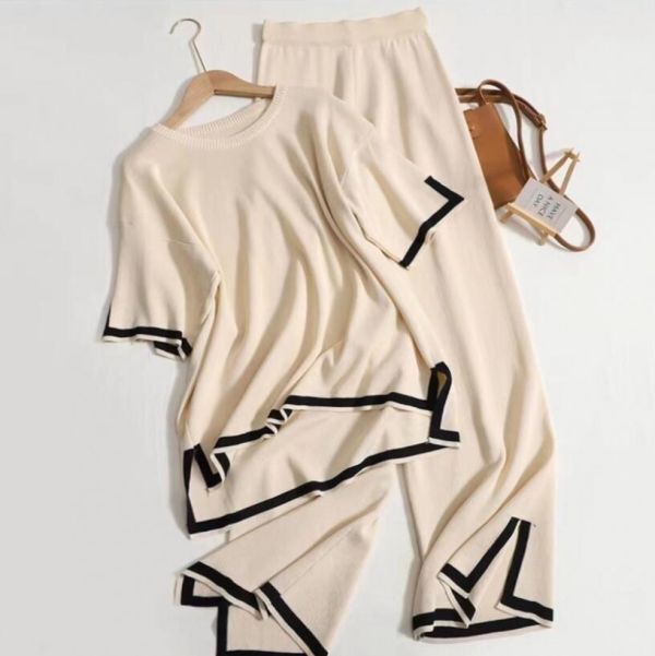 > S~XL 上品 レディース セットアップ 半袖 パンツスーツ パンツセットアップ 2点セット トップス ボトムス 通勤 入学式 着痩せ / 杏