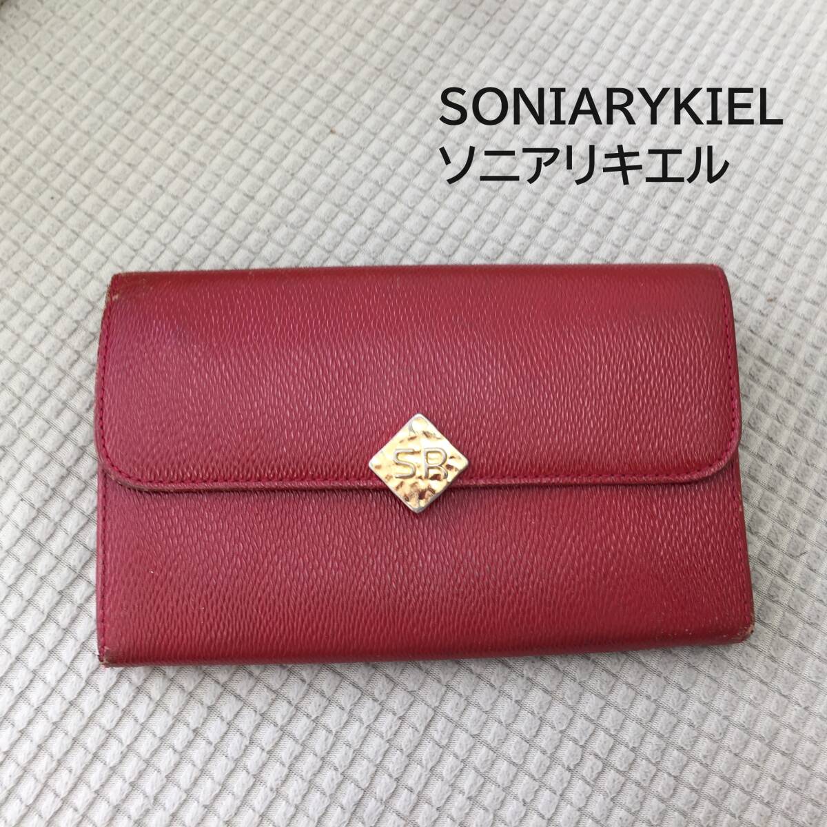 > [財布] 長財布「SONIA RYKIEL」暗い赤色系 使用感あり 剥げあり 小銭入れあり カードポケット4個 ソニア・リキエル