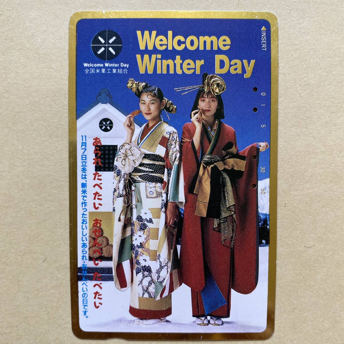 - 【使用済】 テレカ 女性モデル あられたべたい おせんべいたべたい