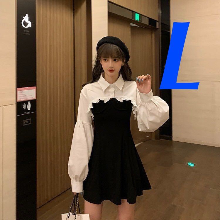 - ワンピース アシンメトリー ミニスカート ミニワンピース セットアップ 上下セット 2点セット 黒 ブラック L