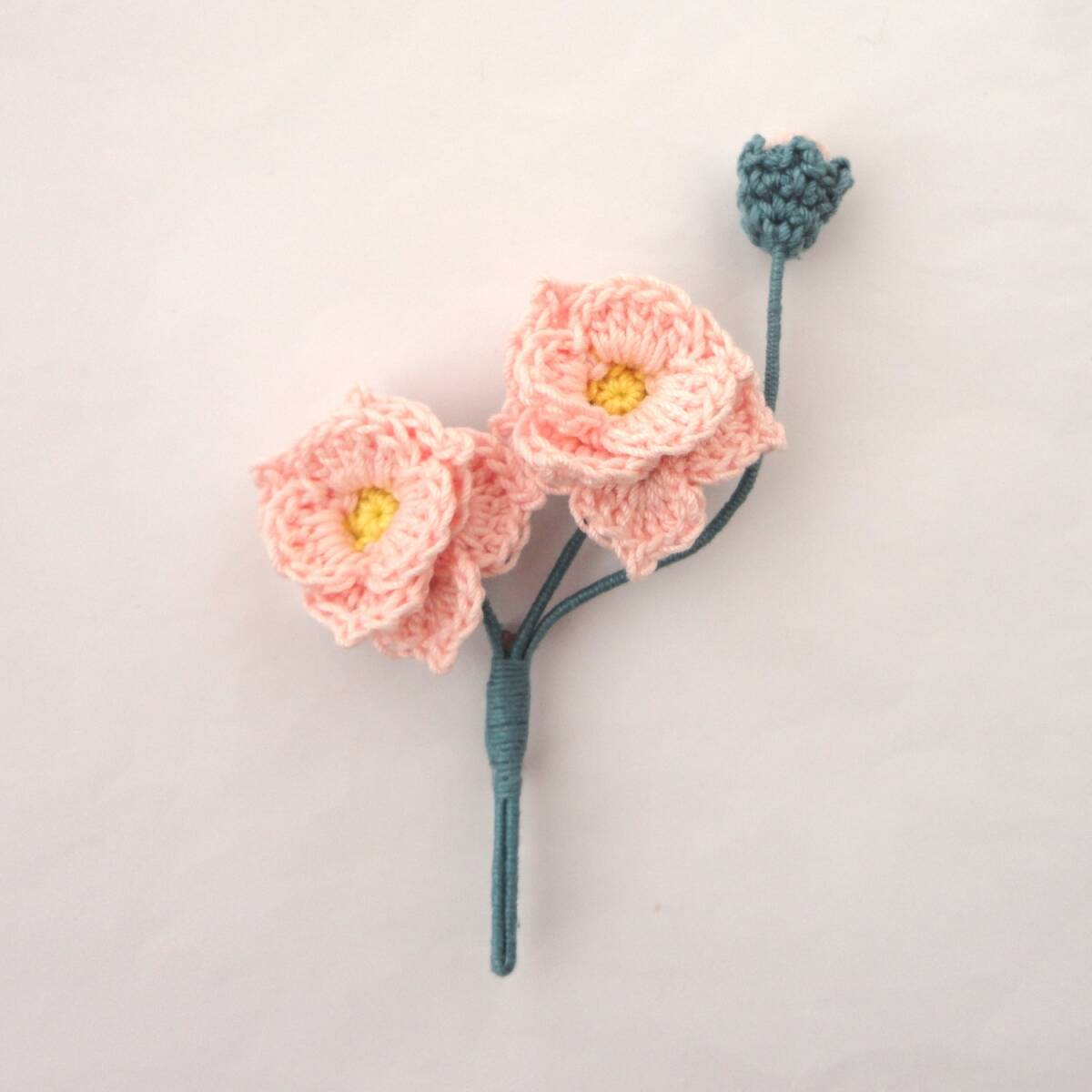 - バラのブローチ*コサージュ*ワイヤー*PK*レース編み*ハンドメイド*b650