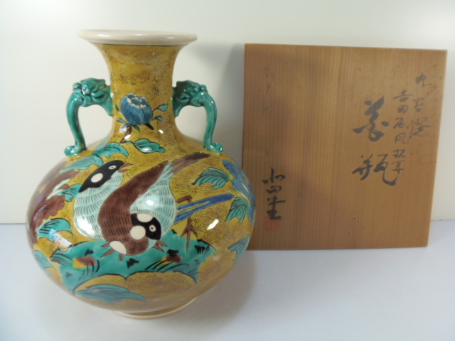 - k260 【九谷焼】 花瓶 壷 吉田屋風双耳 【同梱不可】