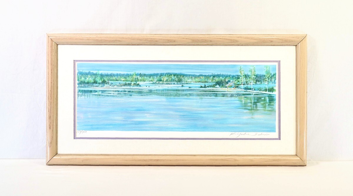 > 真作 石井清 大判リトグラフ「白樺の湖 (フィンランド)」画70×24cm 神奈川県出身 無所属 北欧風景を主題 静寂な空間を演出の心象風景 9566