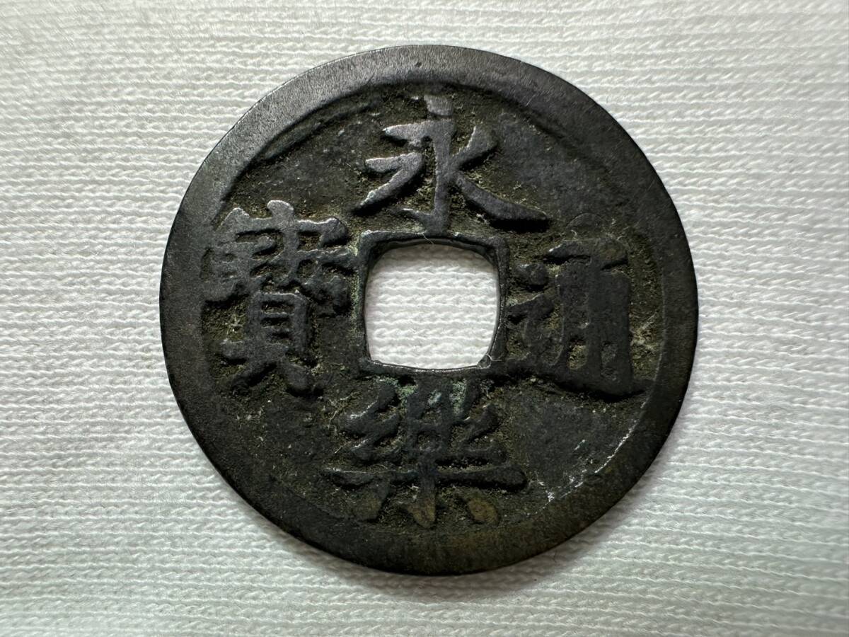 > ・ 古銭? 永楽通宝? 永楽通寶? ★am7 穴銭 日本 清朝銭 穴銭 渡来銭 大陸古銭 中国 硬貨 量目 約3.05g 24.6mm 1.0mm 詳細不明