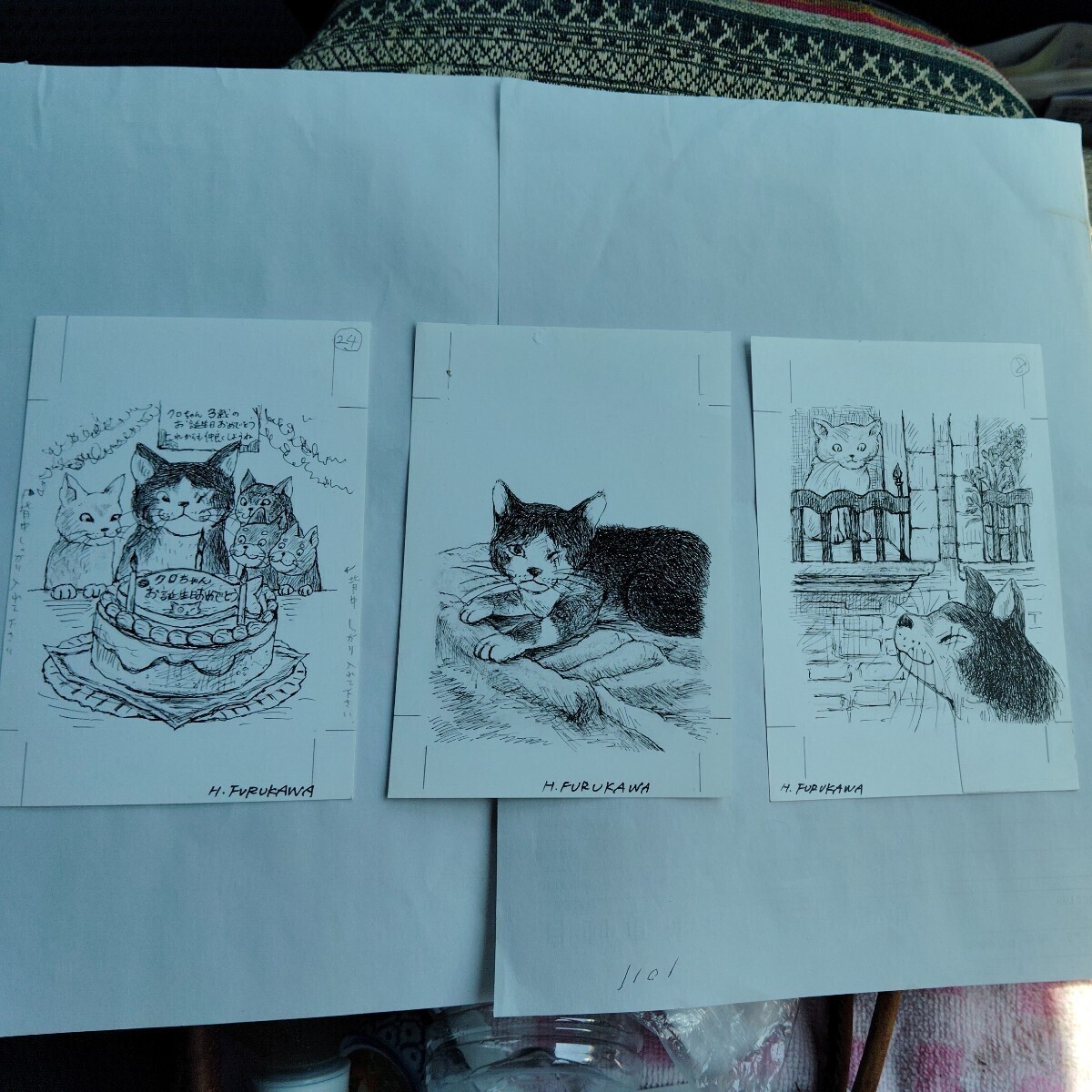 - 「片目のクロちゃん」童話挿絵原画真作 絵本作家古川裕子作