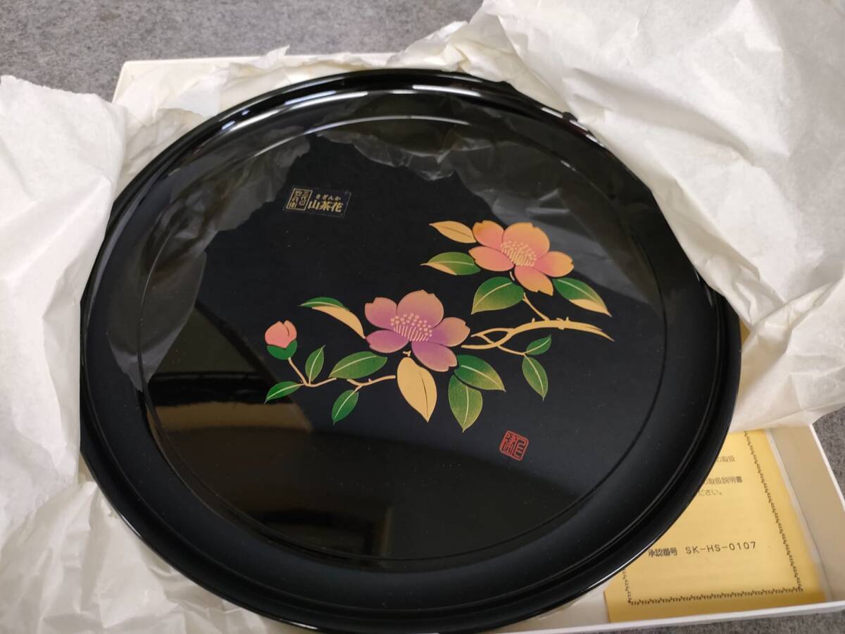 - 会津塗り 特選漆器 お盆 丸盆 三代目 山茶花 おぼん