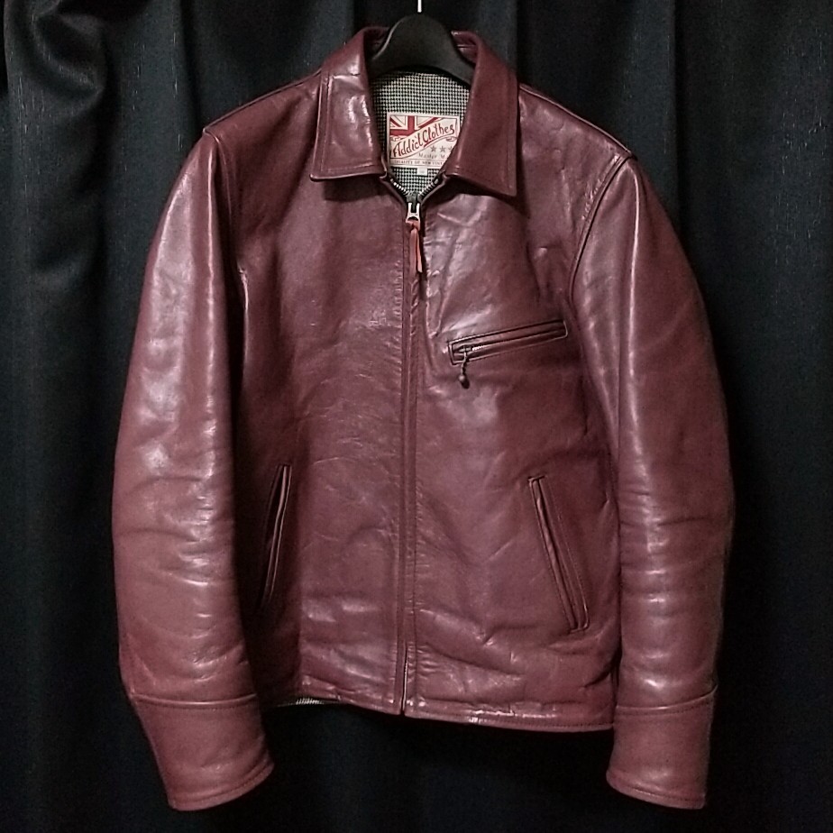 > Addict Clothes アディクトクローズ レザージャケット 38 バーガンディ馬革 ホースハイド ライダース 茶芯 スポーツジャケット