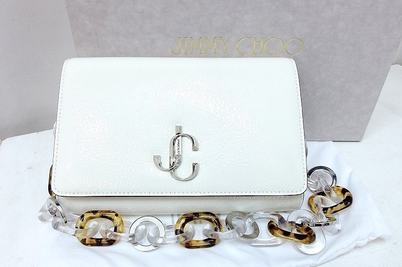 > ジミーチュウ JIMMY CHOO ヴァレンヌ クラッチ プラチェーン 2WAYバッグ 214 白×シルバー金具 kz4420196230