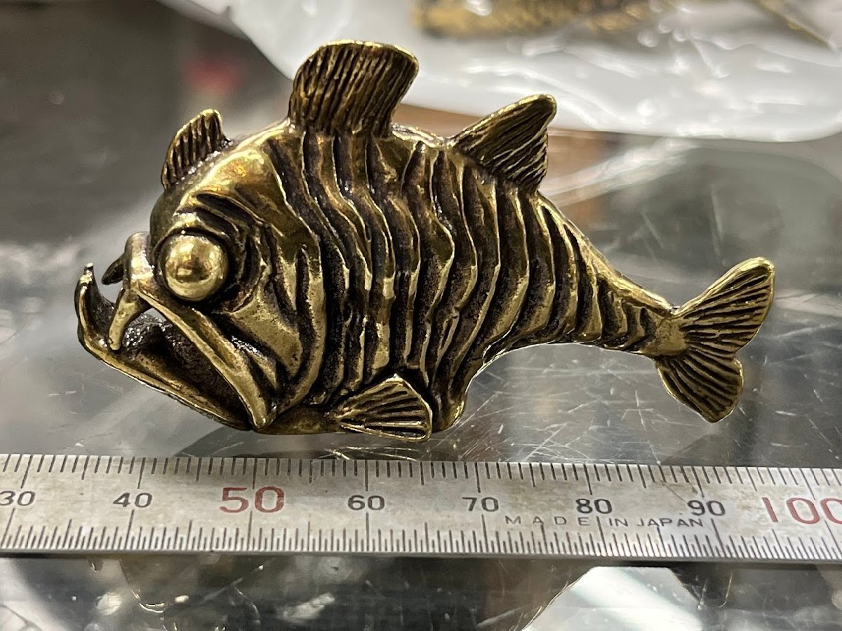 - トガリムネエソ 深海魚 ブラス 真鍮製 置き物 オブジェ 置物 フィギュア アクセサリー根付け お守り キーホルダー アンティーク ペンダント