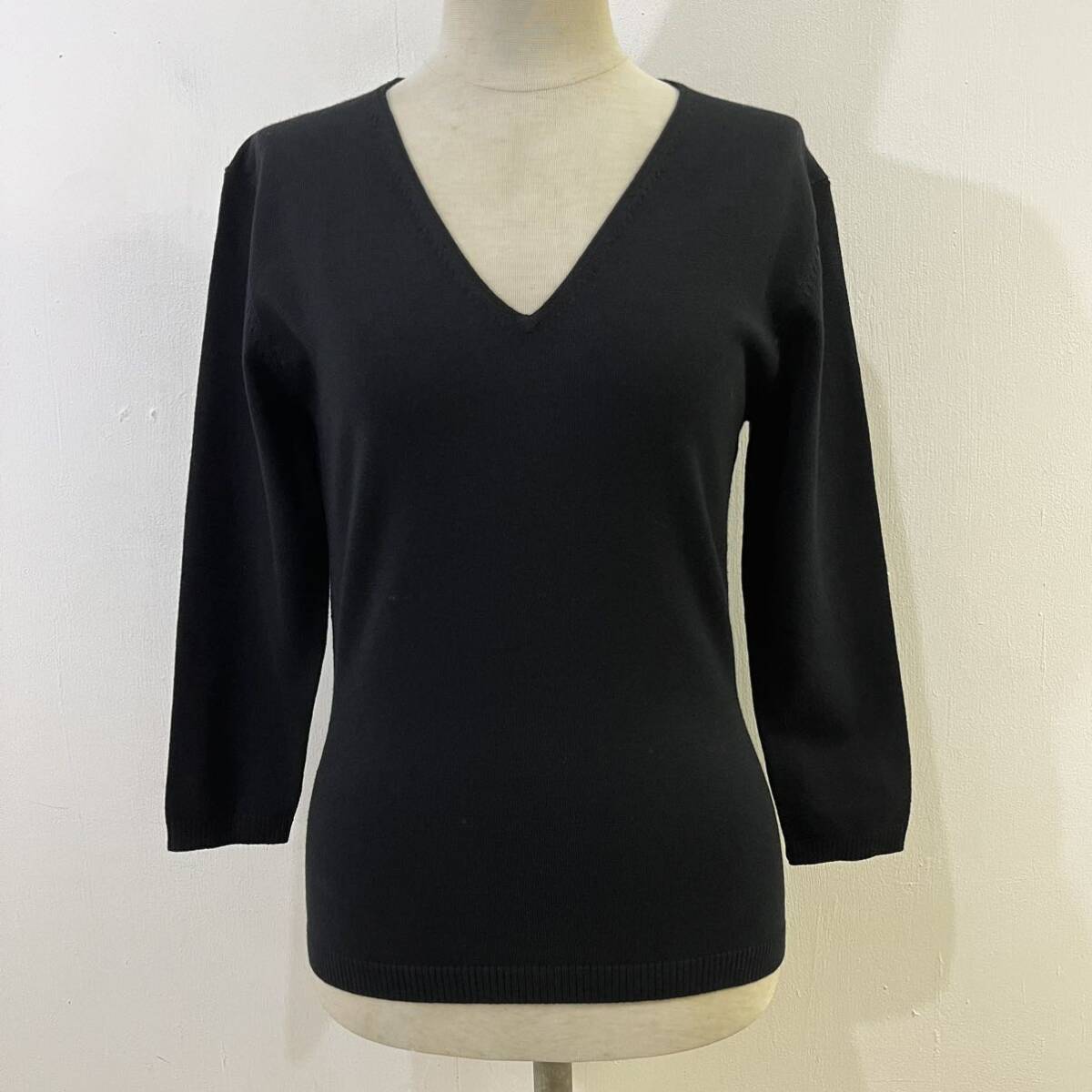- 新品未使用タグ付き Depanneur フランス製 定価¥13,000- ニットカットソー 長袖ニット Vネックニット 黒【レターパックプラス郵送可】O